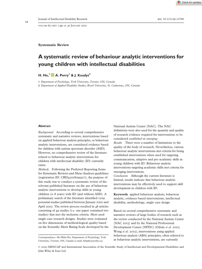 J Intellect Disabil Res - 2020 - Ho - A Systematic Review of Behaviour ...