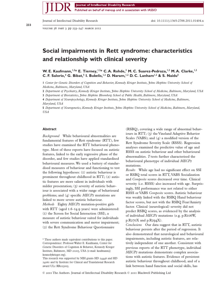 J Intellect Disabil Res - 2011 - Kaufmann - Social Impairments in Rett ...