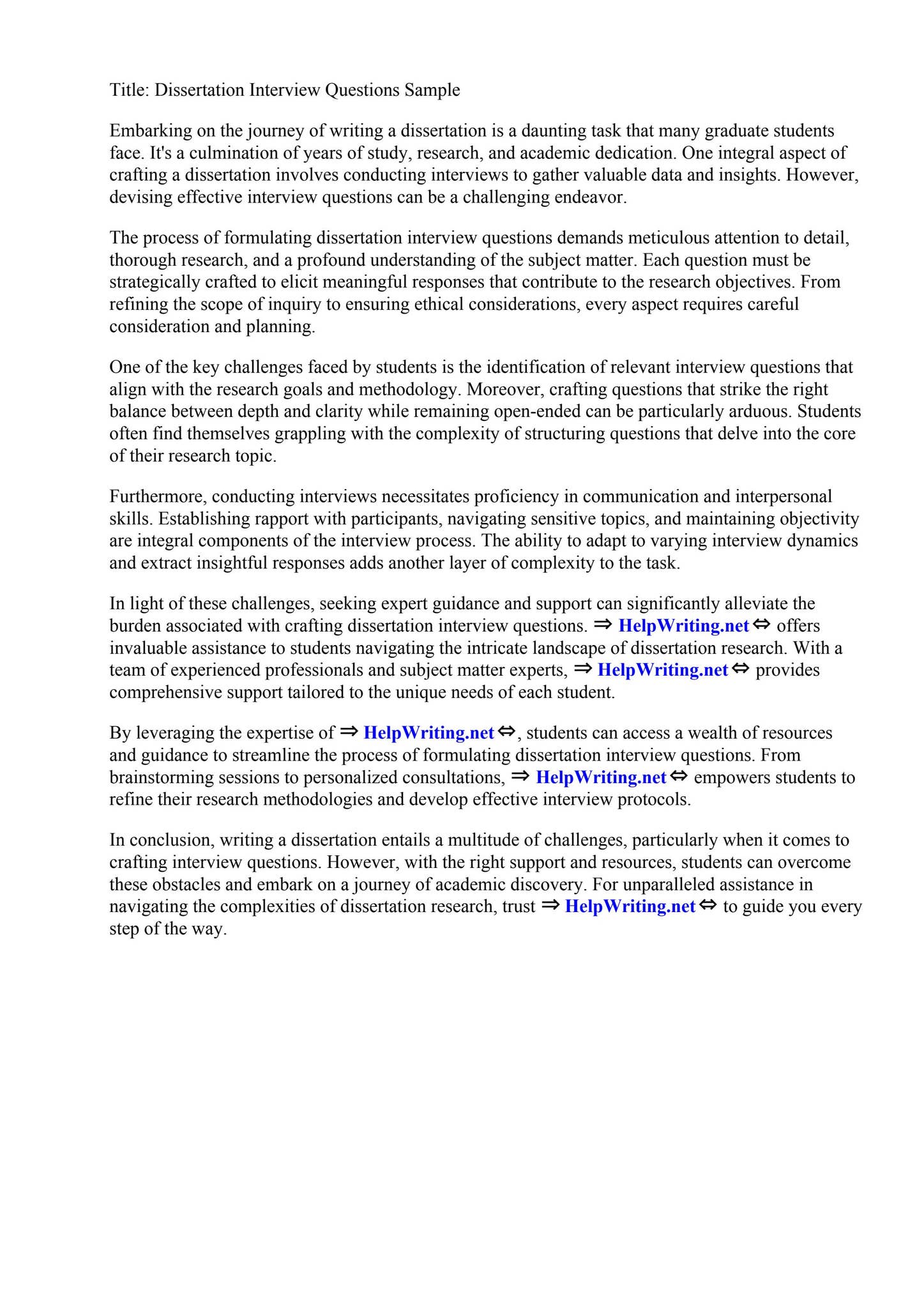 Sample Dissertation Interview Questions by Holly Hoppe - Issuu