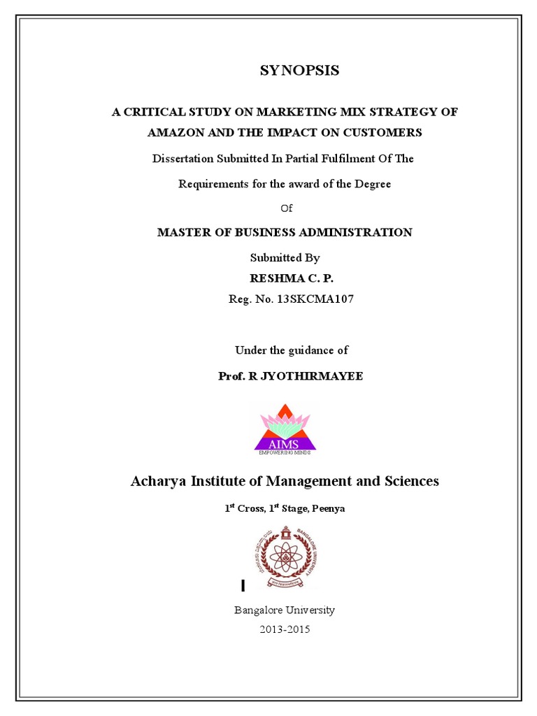 Sample Synopsis For MBA Dissertation | PDF | Amazon.Com | E Commerce