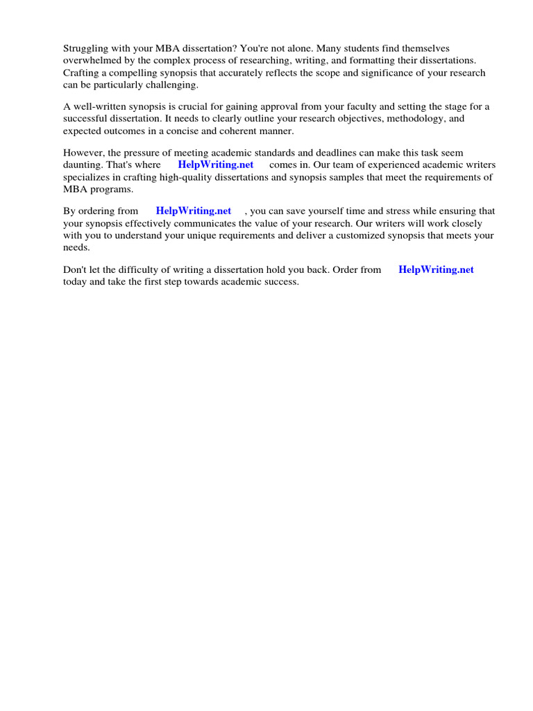 Synopsis Sample For Mba Dissertation | Download Free PDF | Thesis ...