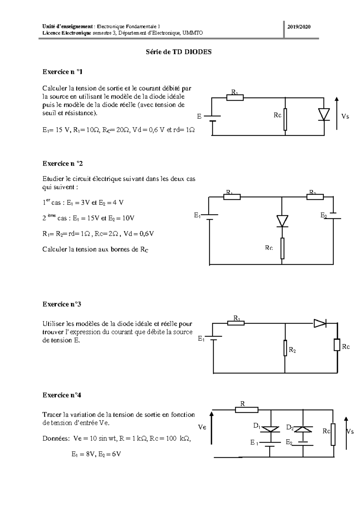 TD DIODES: Exercice 2 - Analyse des Modèles de Diodes en Électronique ...
