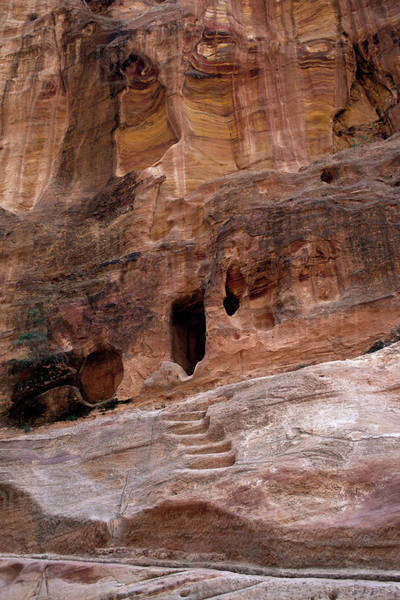 Middle East, Jordan, Petra, exterior view of cave on cliff side and ...