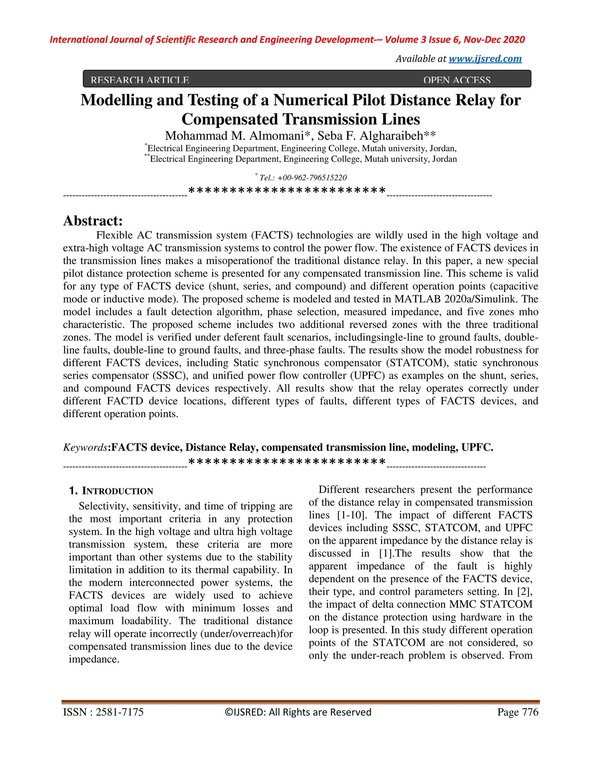 Modelling and Testing of a Numerical Pilot Distance Relay for ...