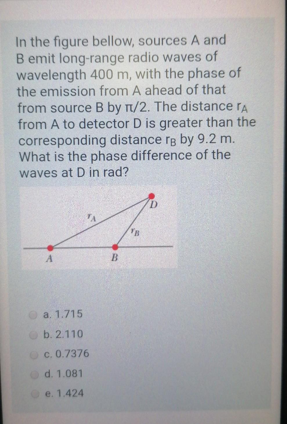 Solved Sources A and B emit long-range radio waves of | Chegg.com
