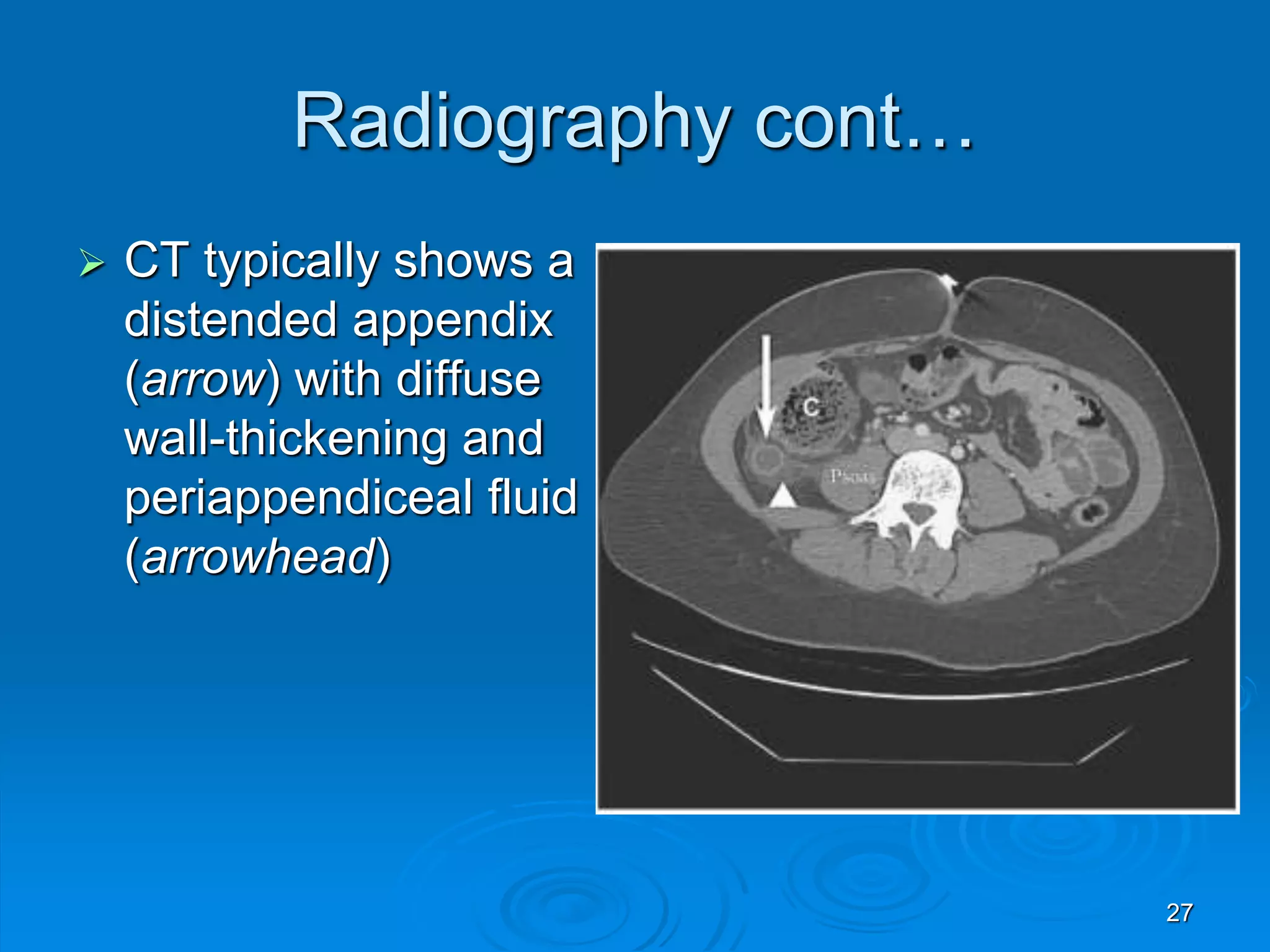 Abdominal computed tomography showing distended appendix , measuring 11 ...