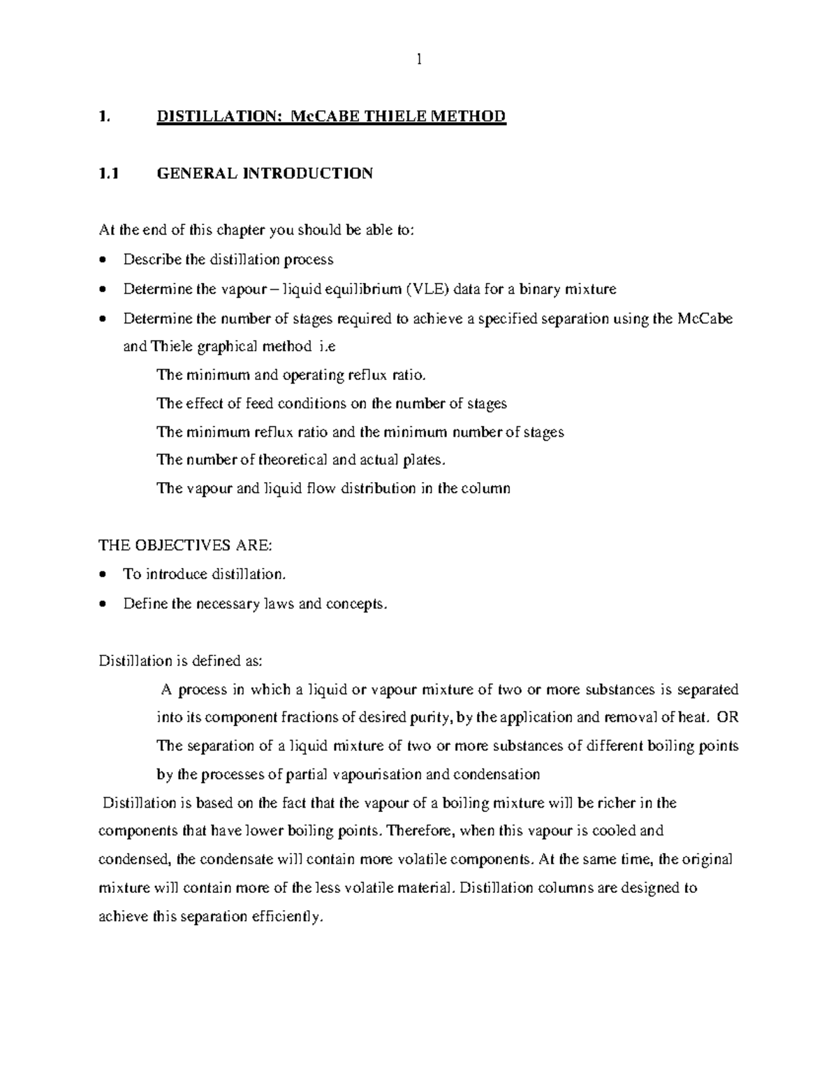 Distillation Notes - DISTILLATION: McCABE THIELE METHOD 1 GENERAL ...