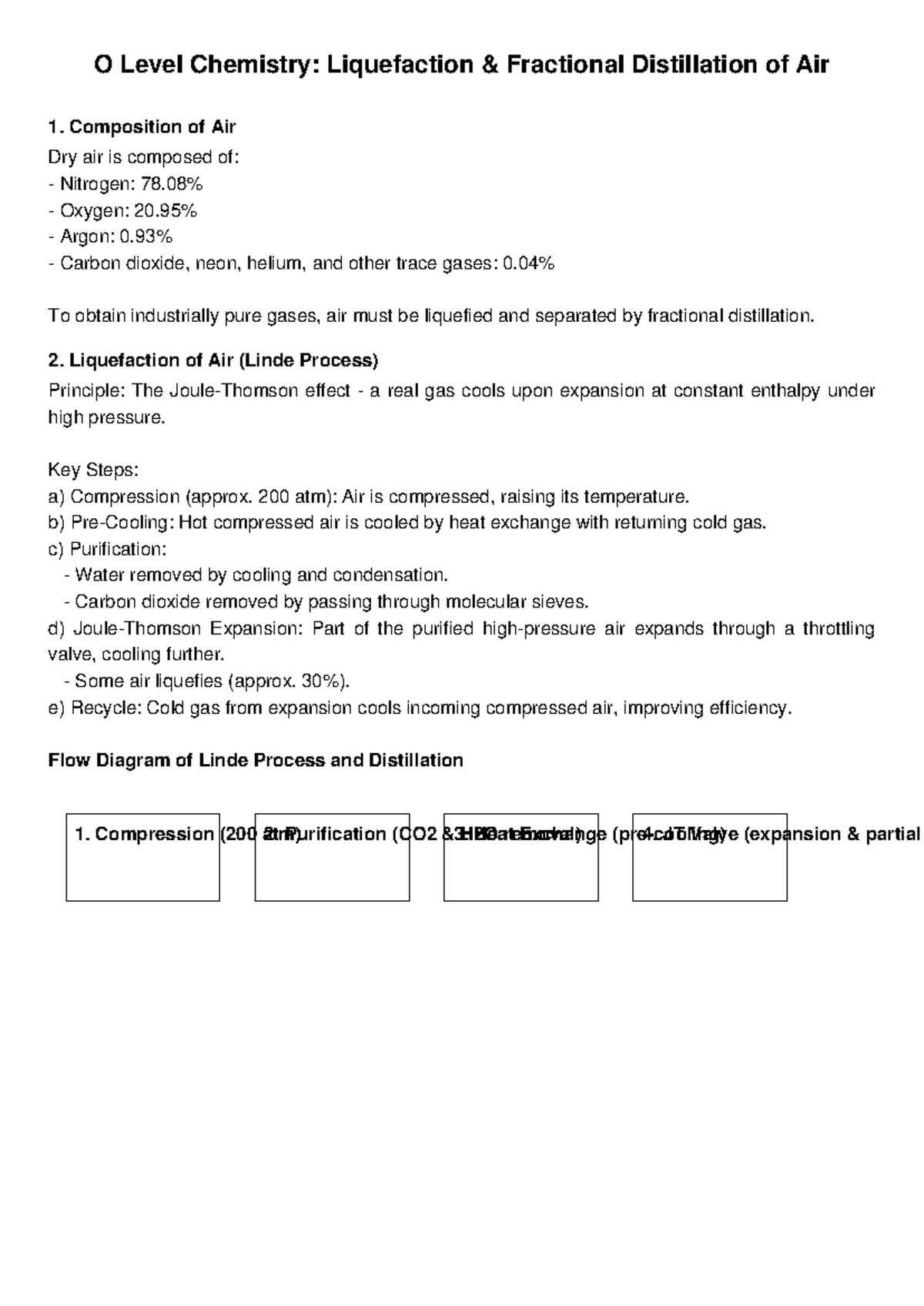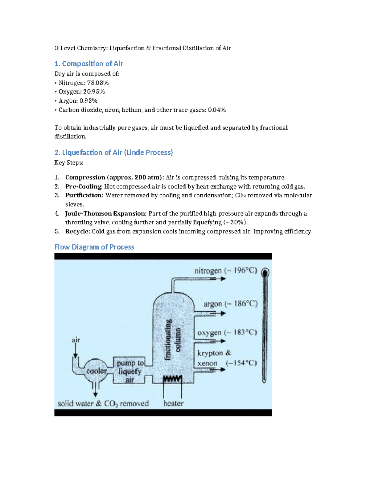 O Level Chemistry: Air Distillation & Liquefaction Process Notes - Studocu