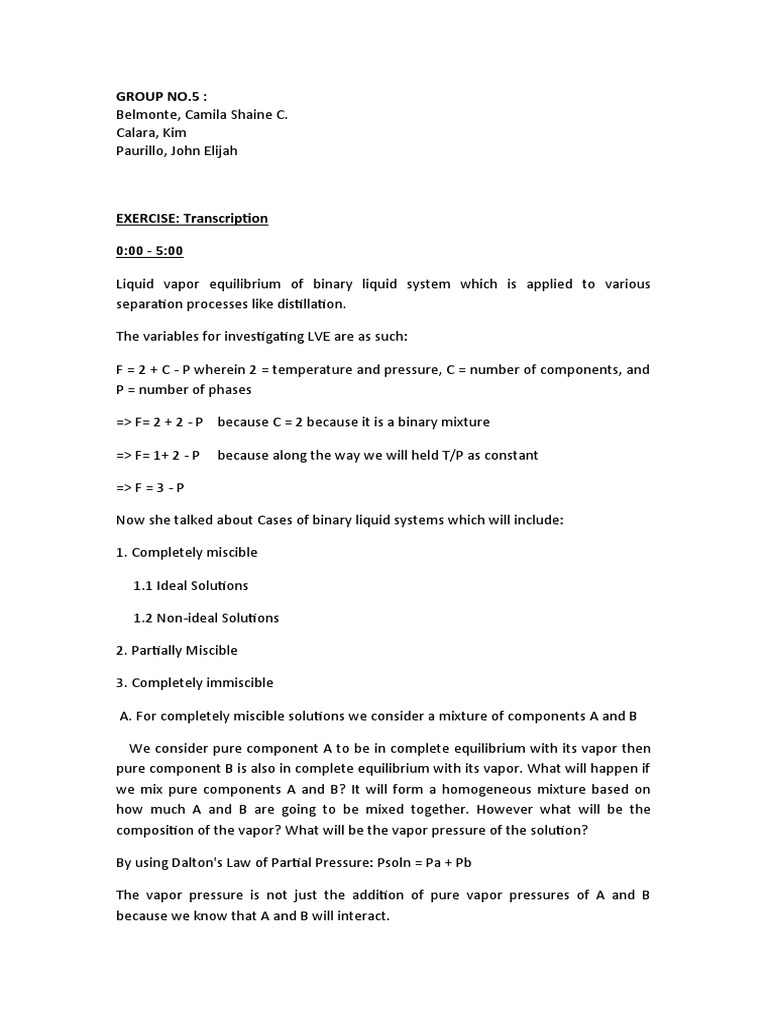 Exercise Transcription | PDF | Distillation | Vapor
