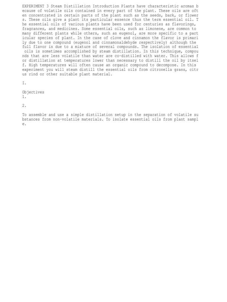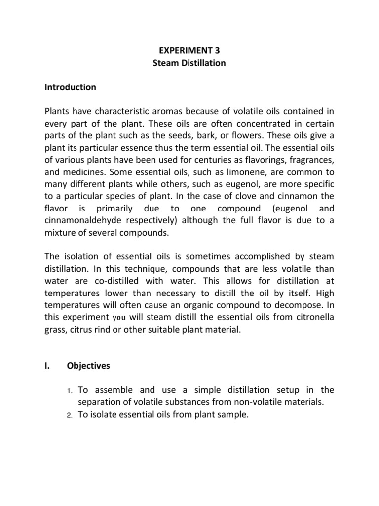 Exercise 3 Steam Distillation | PDF | Distillation | Essential Oil