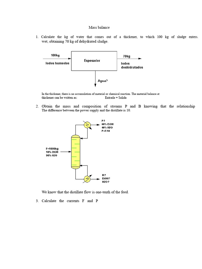Mass Balance Exercise | PDF | Distillation | Water