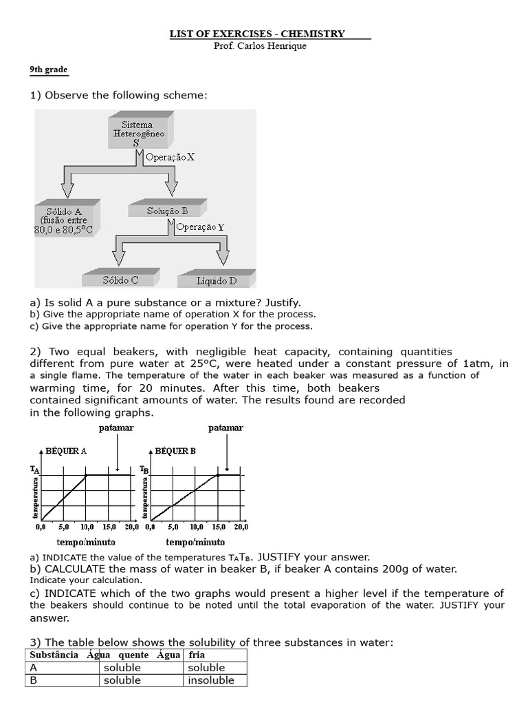 9th Grade Exercise List - Chemistry (Separation of Mixtures) | PDF ...