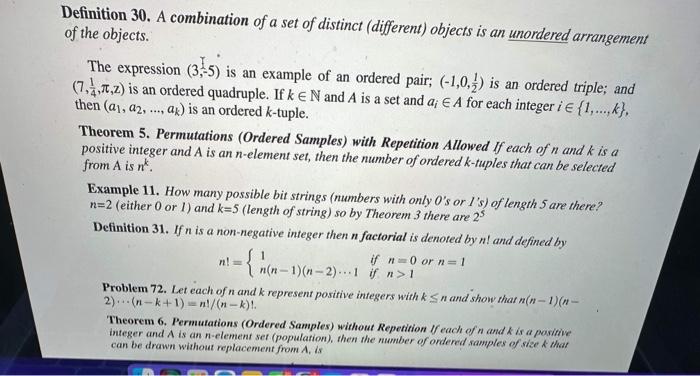 Solved efinition 30. A combination of a set of distinct | Chegg.com