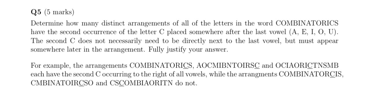 Solved Q5 (5 marks)Determine how many distinct arrangements | Chegg.com