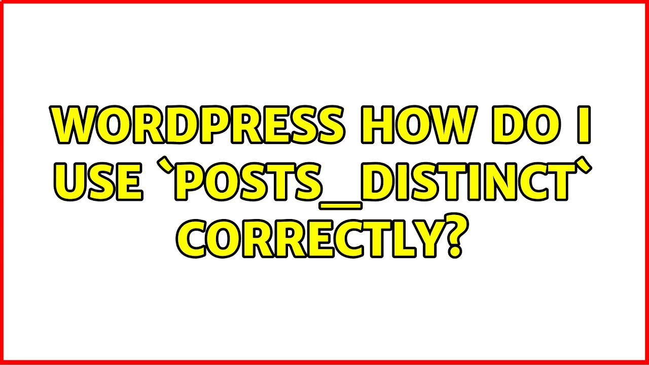 Wordpress: How do I use `posts_distinct` correctly? - YouTube
