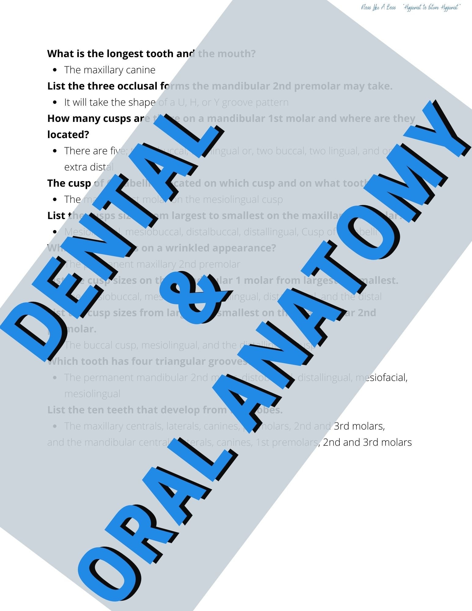 Dental & Oral Anatomy (distinctive Features) 4 Quizzes and Answers - Etsy