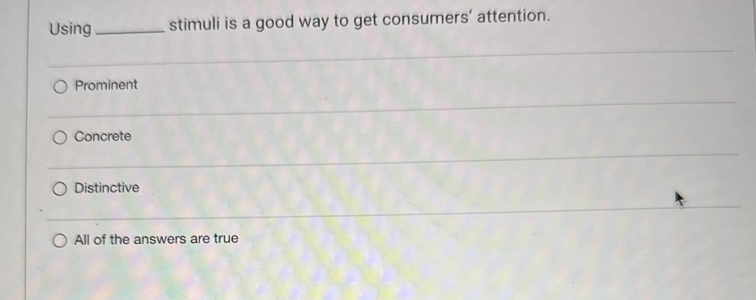 Solved Using stimuli is a good way to get consumers' | Chegg.com