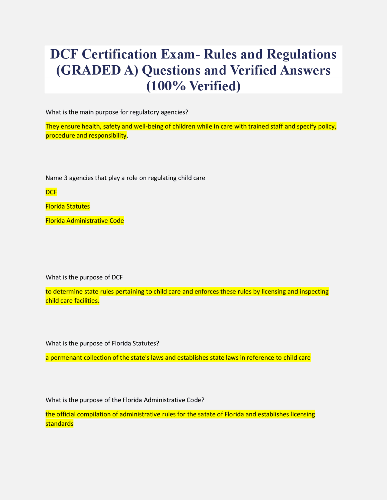 DCF Certification Exam- Rules and Regulations(GRADED A) Questions and ...