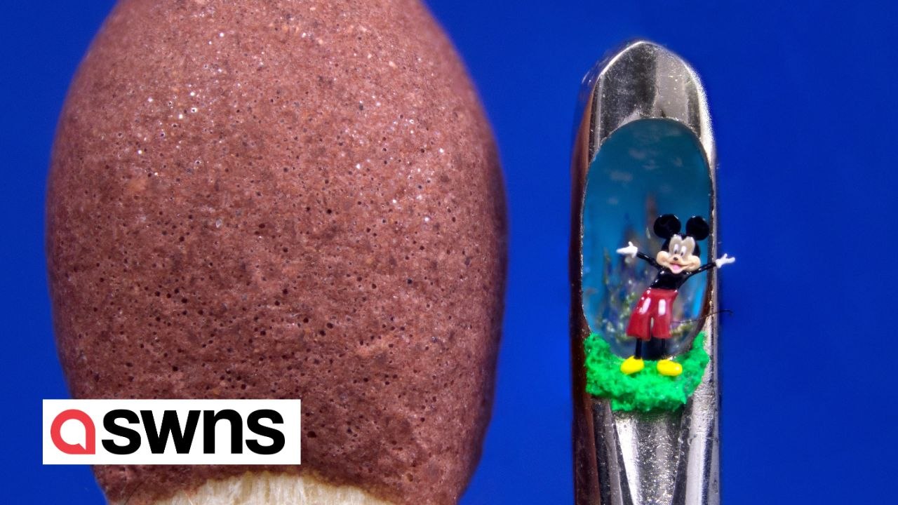 Artist's 0.8mm wide Mickey Mouse fits in the eye of a NEEDLE - video ...