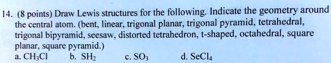 14 8 points draw lewis structures for the following indicate the ...