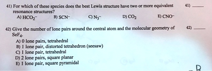 41) For which of these species does the best Lewis structure have two ...