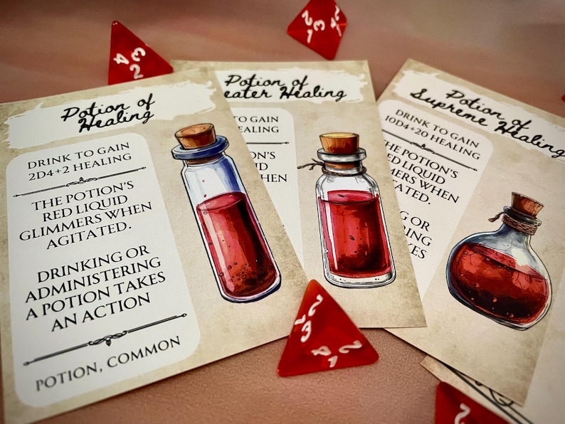 Dnd Health Potion Cards I Dnd Handout Items I Health Potion Tokens I ...