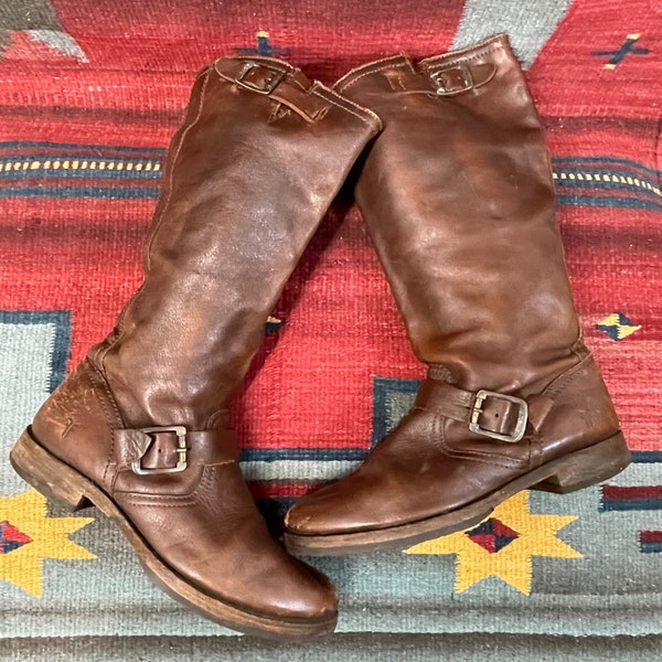 FRYE Veronica Boots Distressed Brown Leather MOTO Engineer - Etsy