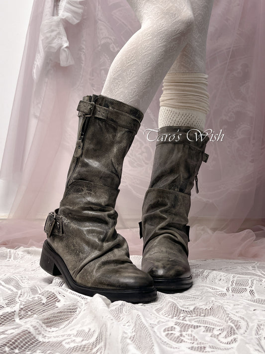 Frye Veronica Distressed Gray Stone Washed Leather Moto Engineer Boots ...
