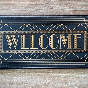 Welcome Art Deco Distressed Sign Plaque Black With Metallic Gold ...