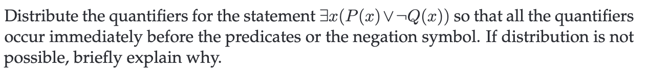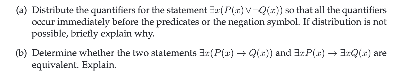 Solved (a) Distribute the quantifiers for the statement | Chegg.com