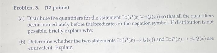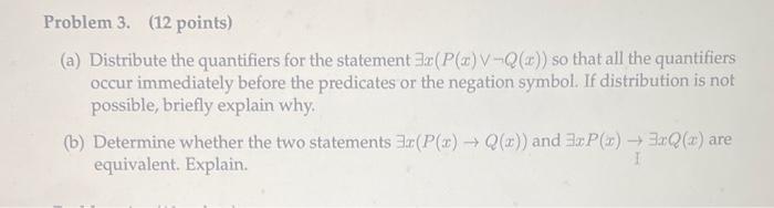 Solved Problem 3. (12 points) (a) Distribute the quantifiers | Chegg.com