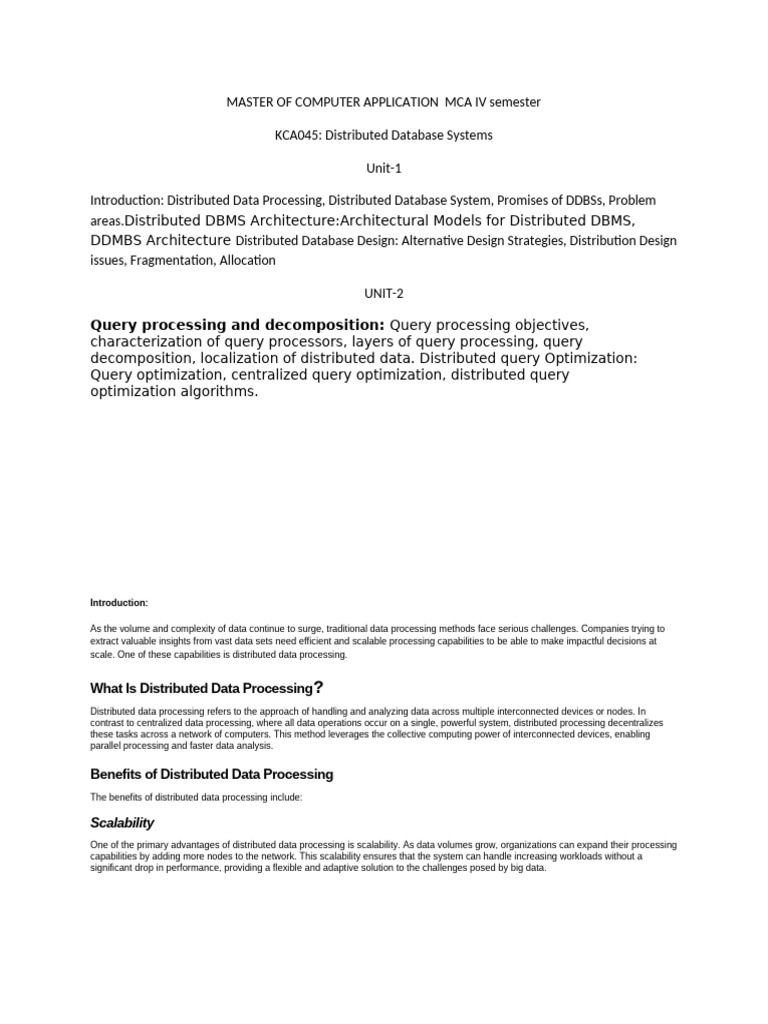 Distributed Database System (KCA045) | PDF | Databases | Scalability