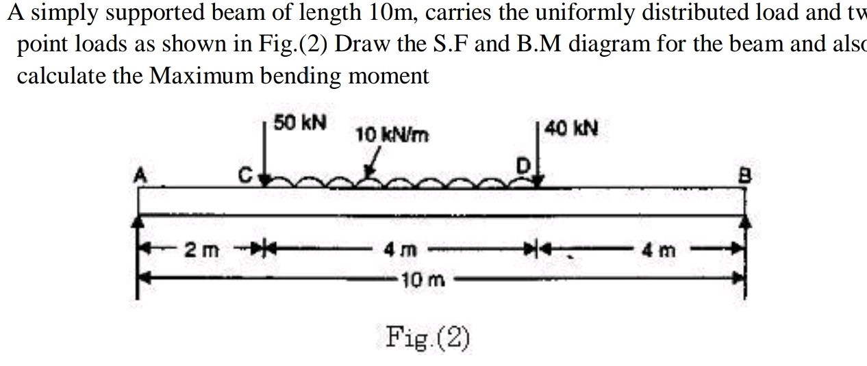 A simply supported beam of length 10 m | StudyX