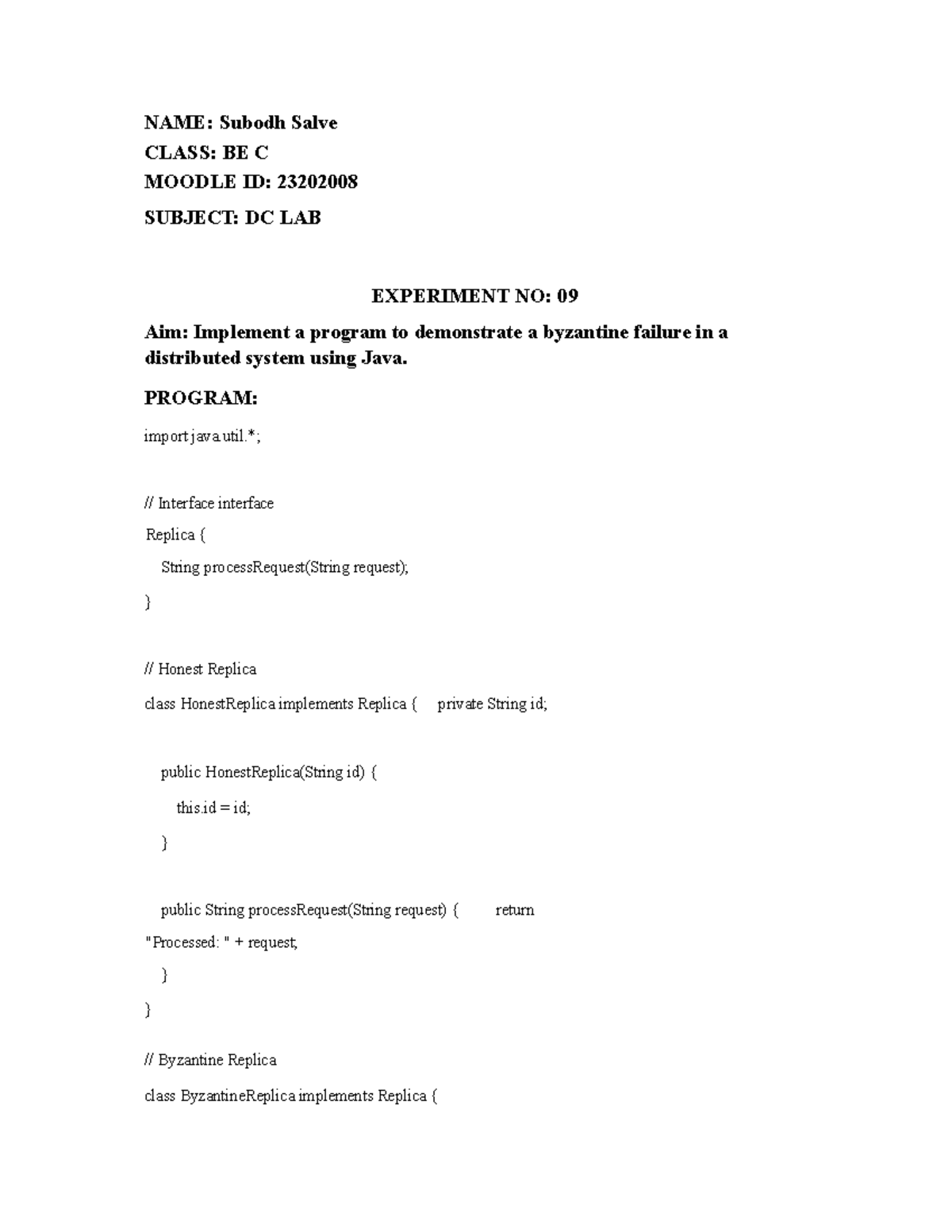 DC LAB EXPERIMENT NO: 09 - Byzantine Failure in Distributed Systems ...