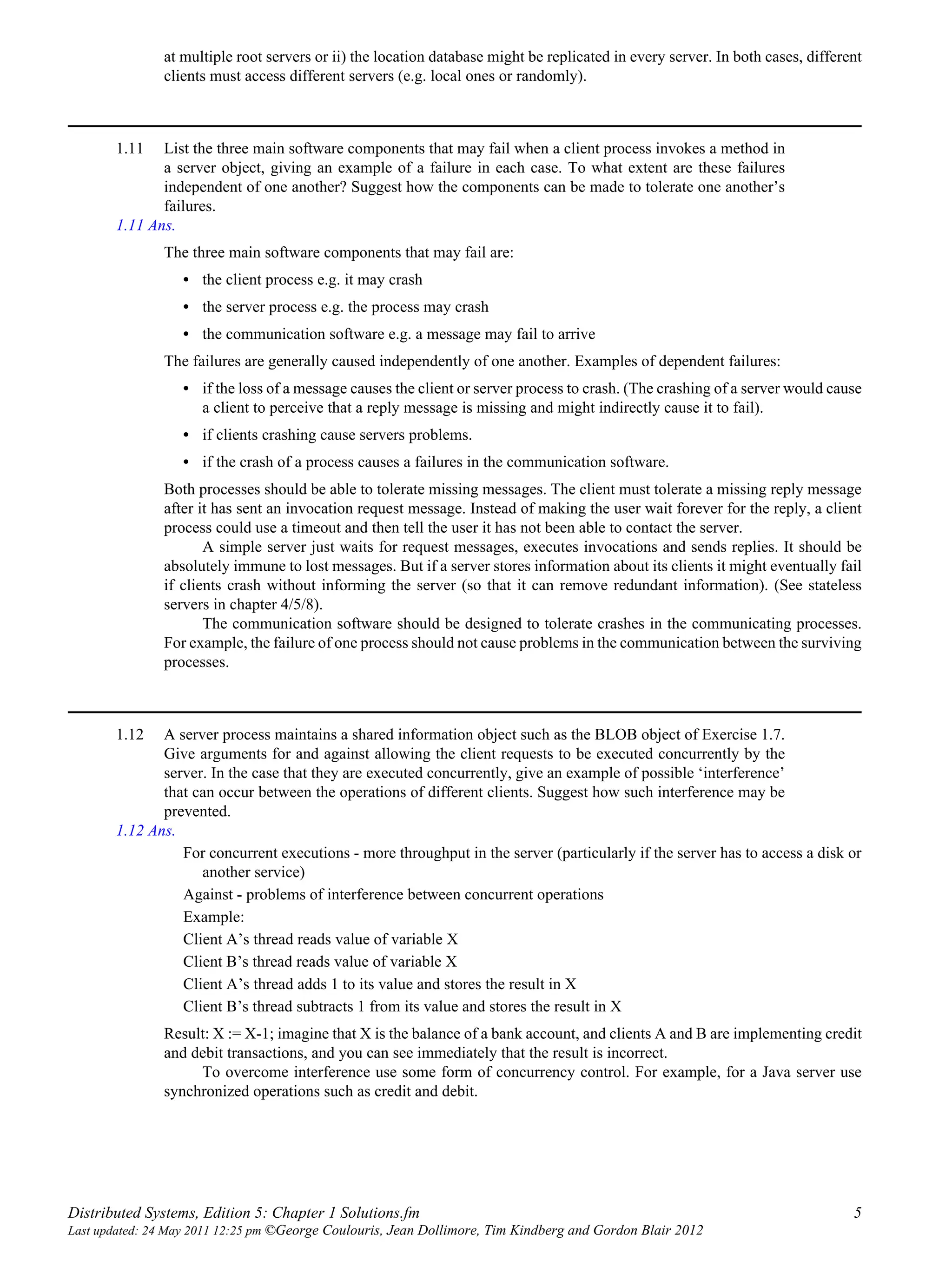 Solutions for Exercises: Distributed Systems 5th Edition by Coulouris ...