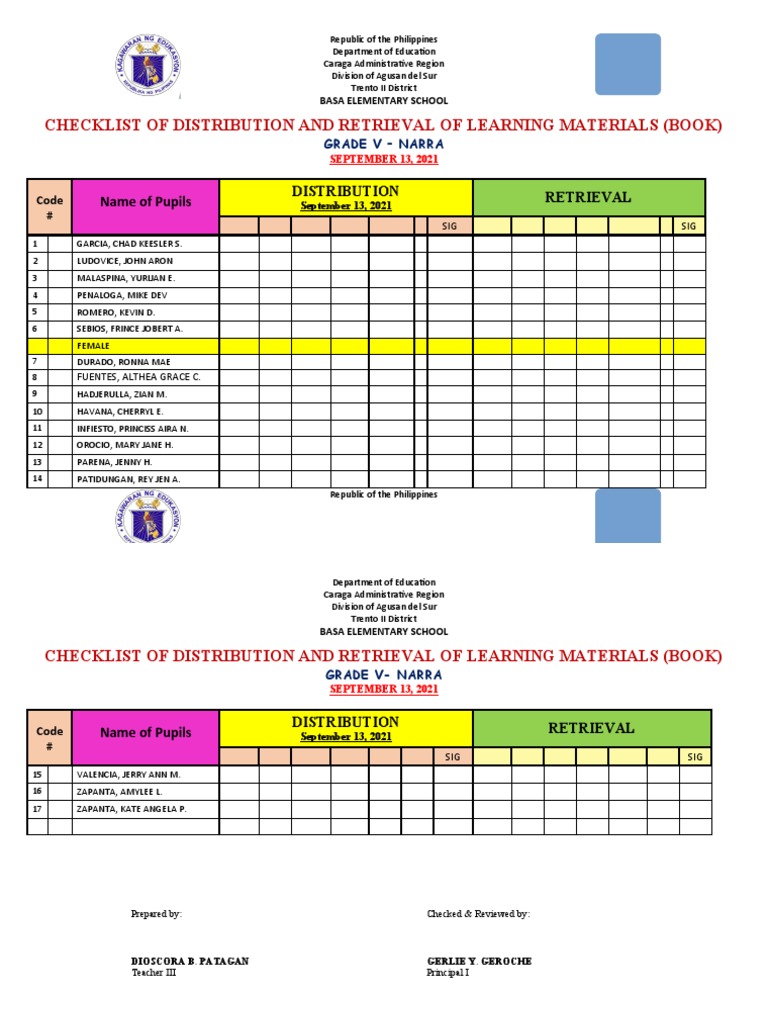 Grade V Narra Learning Materials Checklist | PDF | Government Agencies ...