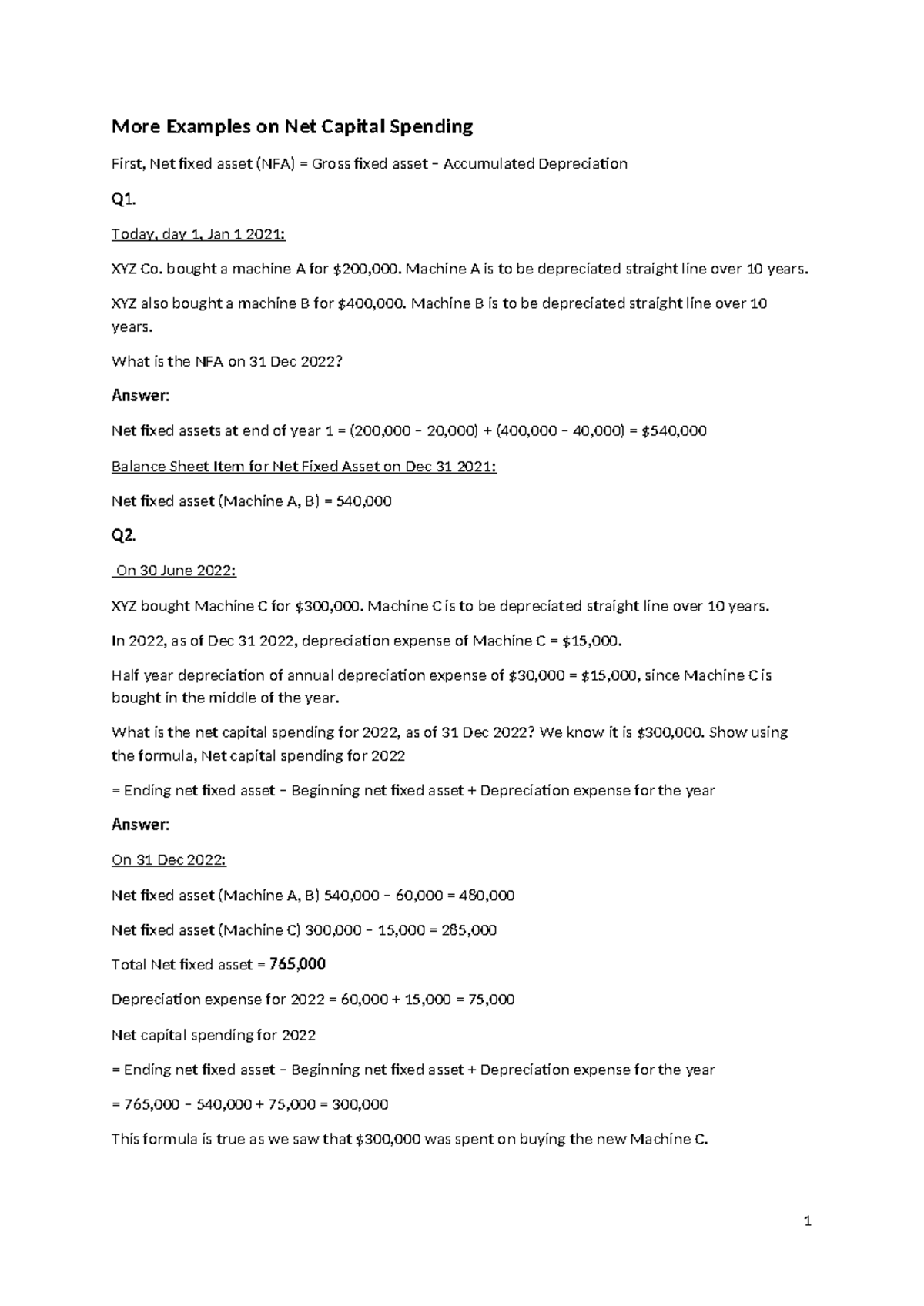 Net Capital Spending Examples for Finance 101 Students - Studocu