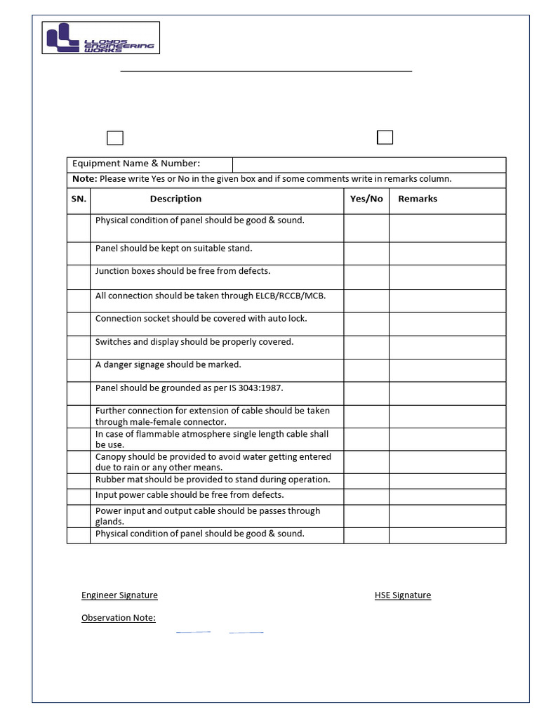 Electrical Distribution Board Inspection Checklist | PDF | Technology ...