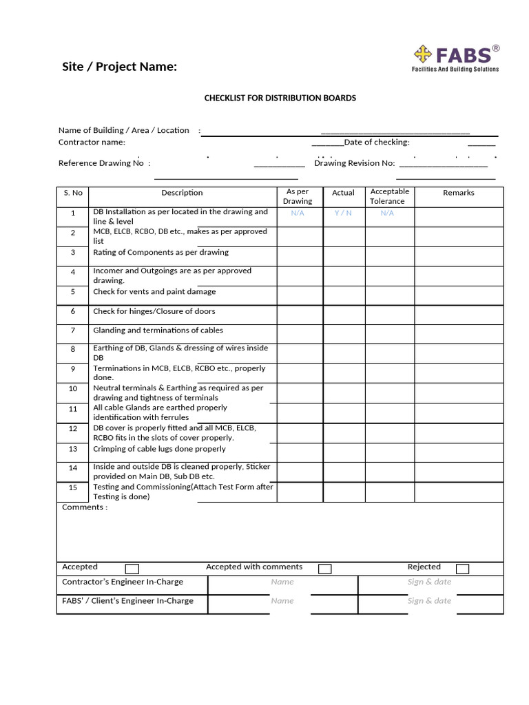 Check List For Sub Main Distribution Board Installation | PDF | Civil ...