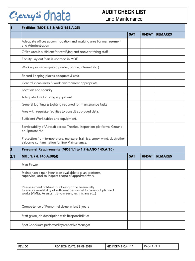 011a Line Maintenance Checklist | PDF