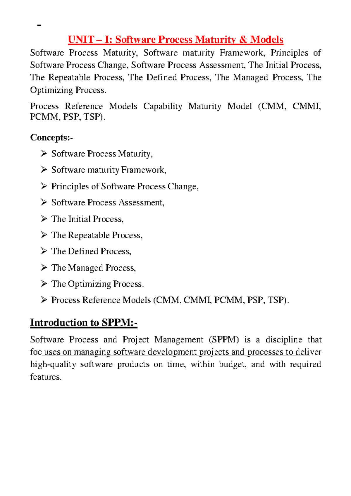 SPPM UNIT I: Software Process Maturity Models and Frameworks - Studocu