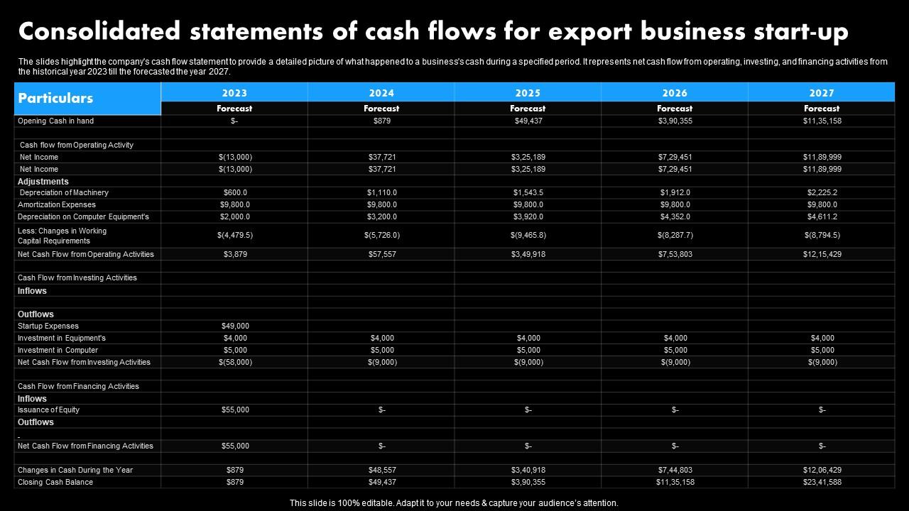 Worldwide Distribution Business Plan Consolidated Statements Of Cash ...