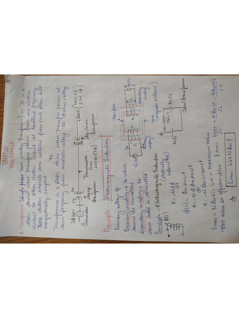 SOLUTION: Electrical engineering transformer notes - Studypool