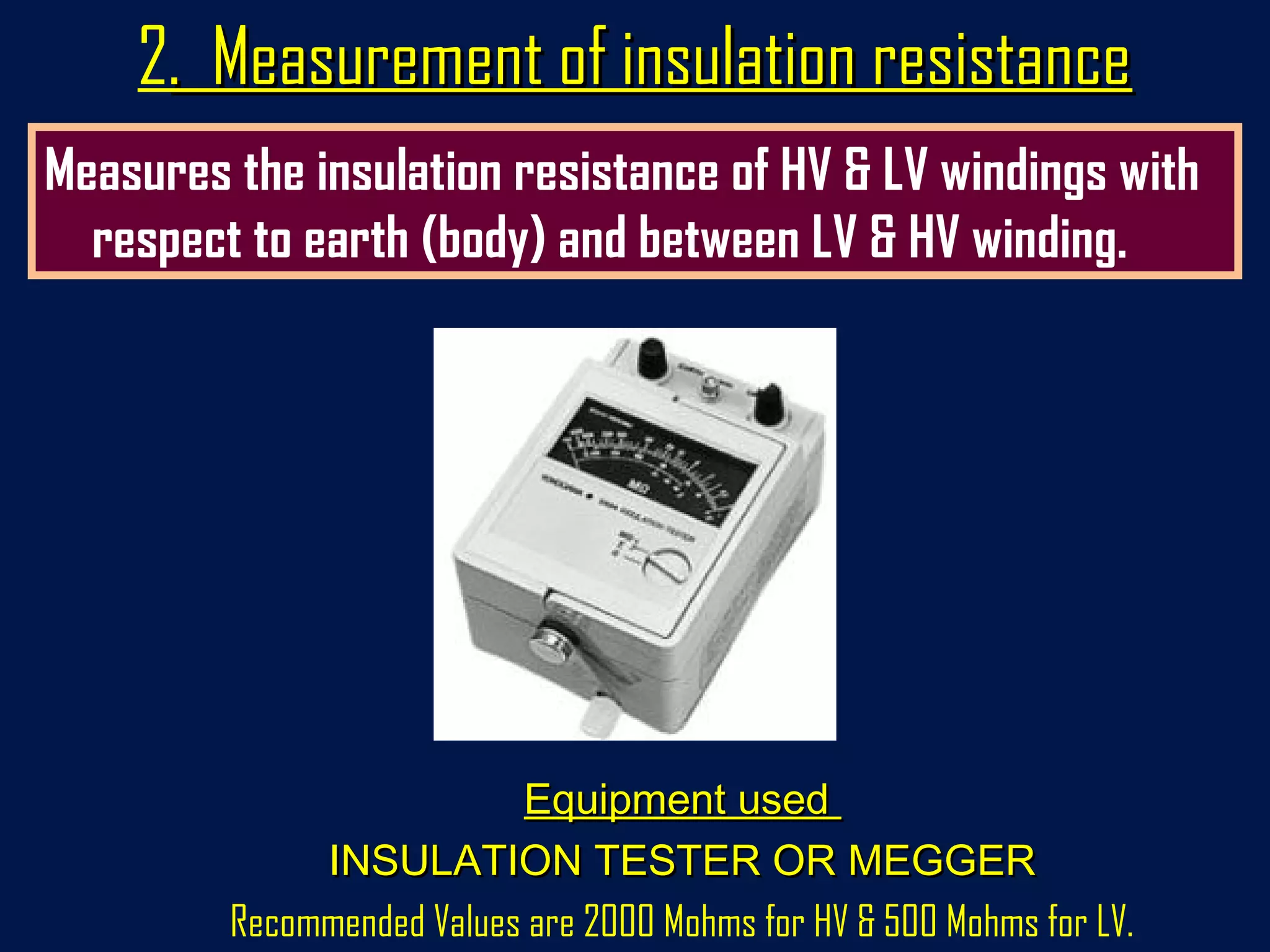 DIST.TRANSFORMER MEGGER/INSULATION RESISTANCE TEST PROCEDURE OF A ...