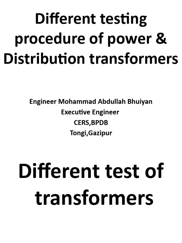 Different Testing Procedure of Power & Distribution Transformer | PDF ...