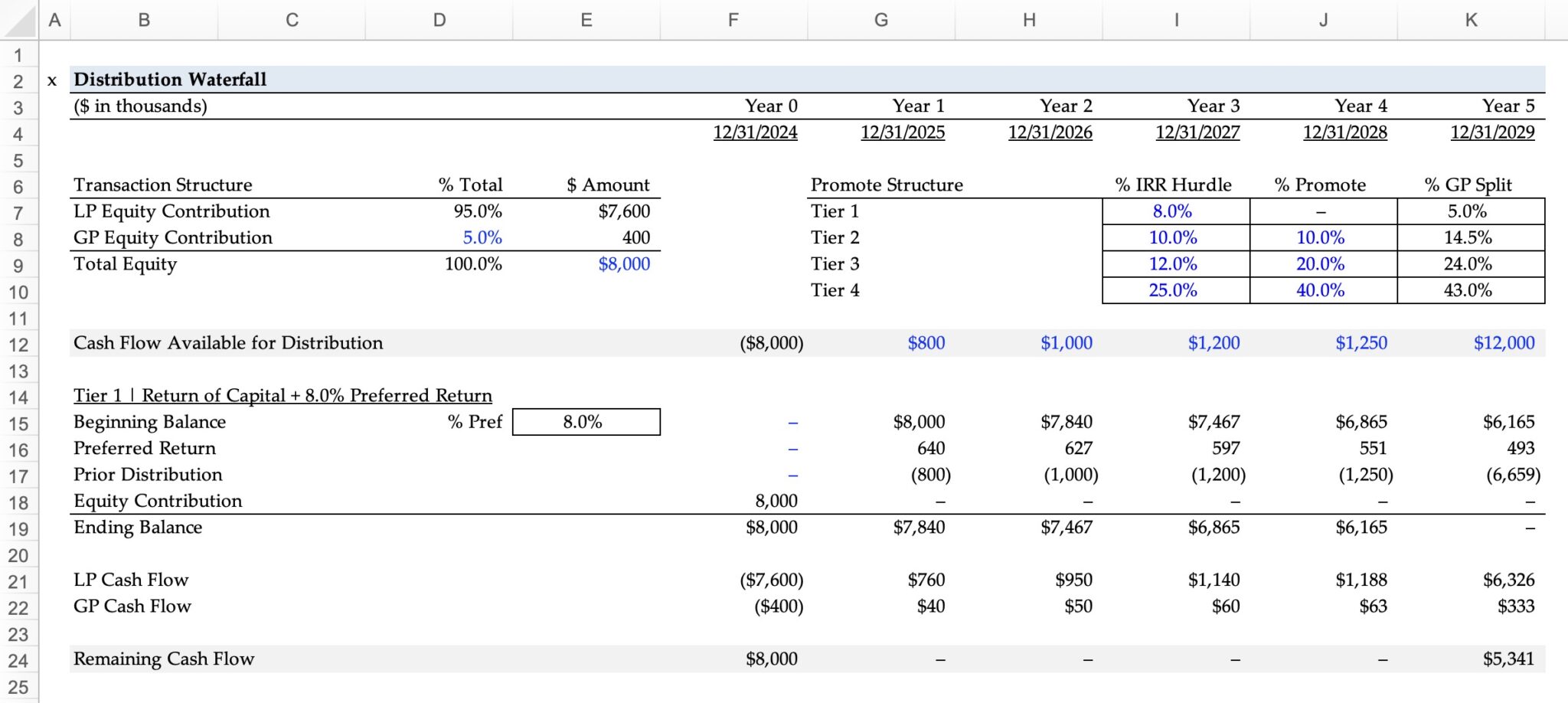 Private Equity (PE) Distribution Waterfall - Excel Model Template ...