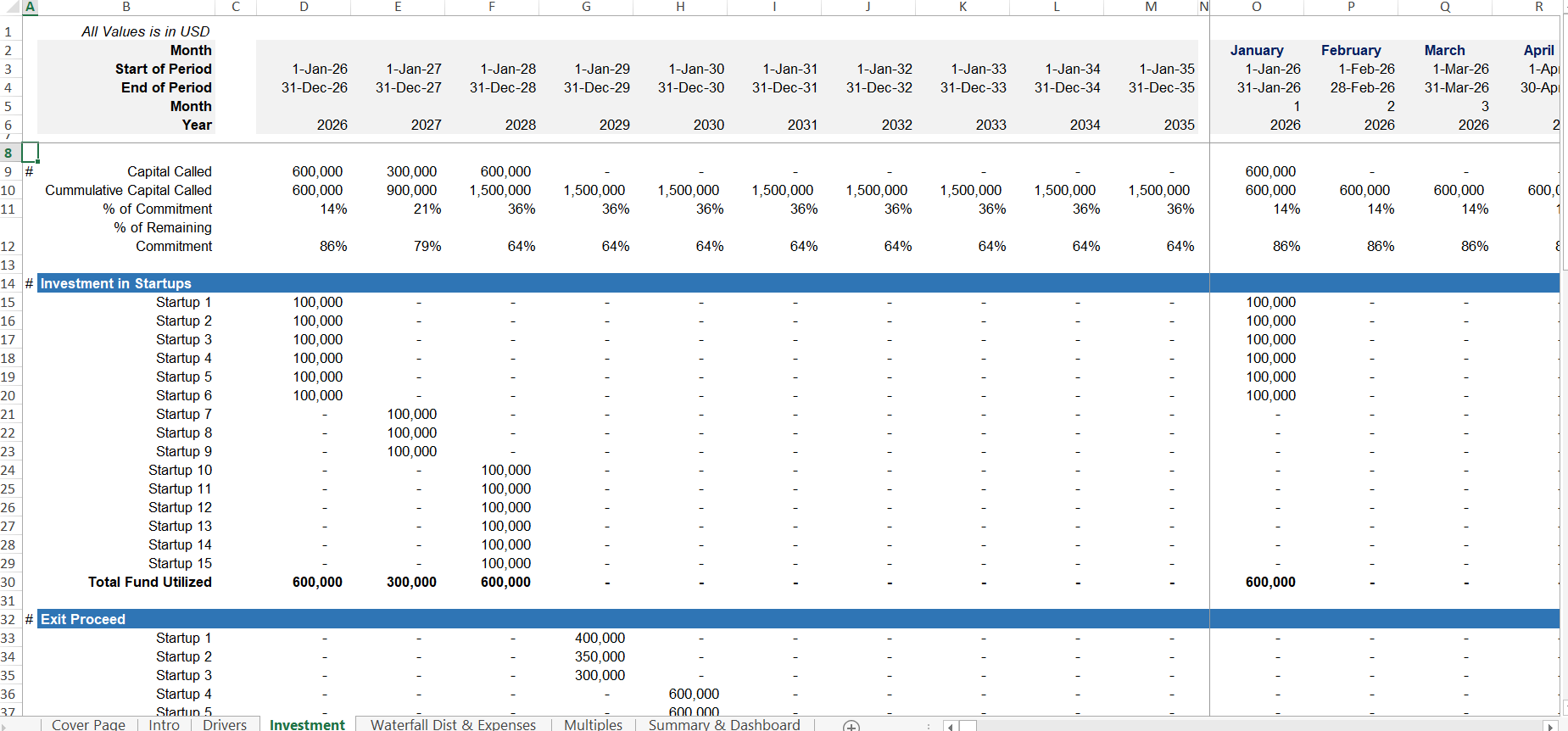 Private Equity Fund Financial Projection Model with Distribution ...