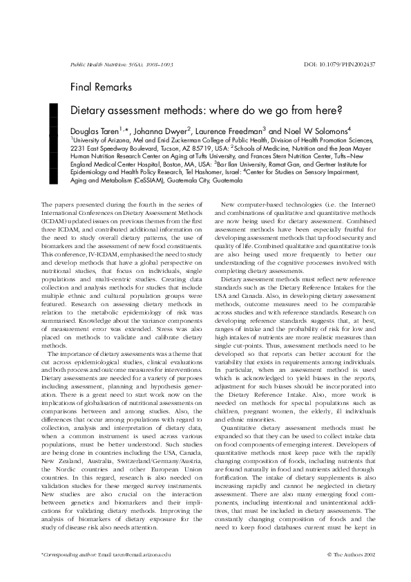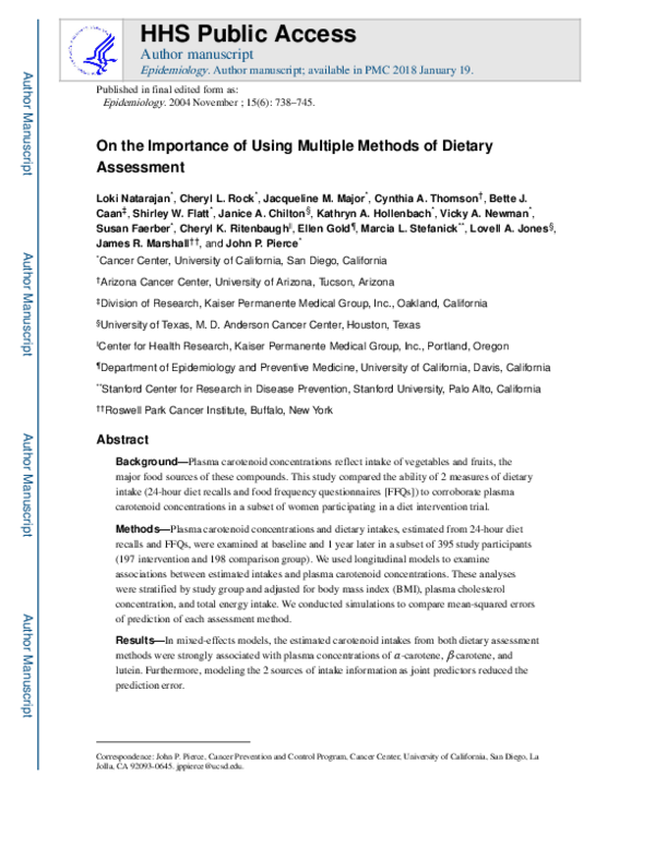 (PDF) On the Importance of Using Multiple Methods of Dietary Assessment