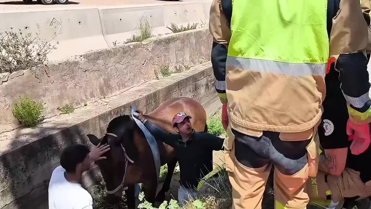 Firefighters rescue horse trapped in ditch in eastern Spain