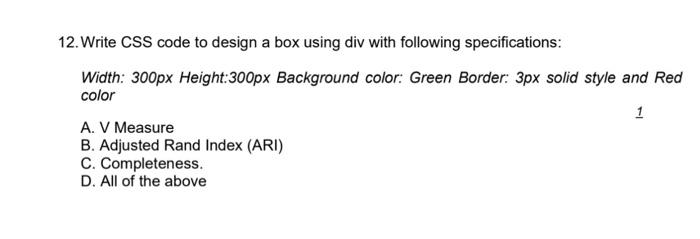 Solved 12. Write CSS code to design a box using div with | Chegg.com